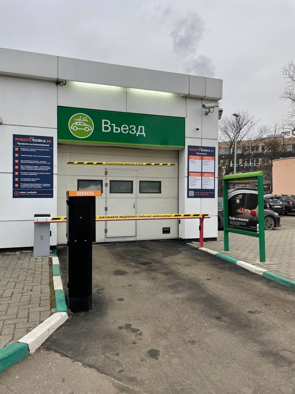 Возле автомойки расположена удобная парковка. В одном здании с ней находится магазин, в котором водитель может купить продукты для дома. Также он может вкусно поесть в кафе «Wild Bean Cafe».
