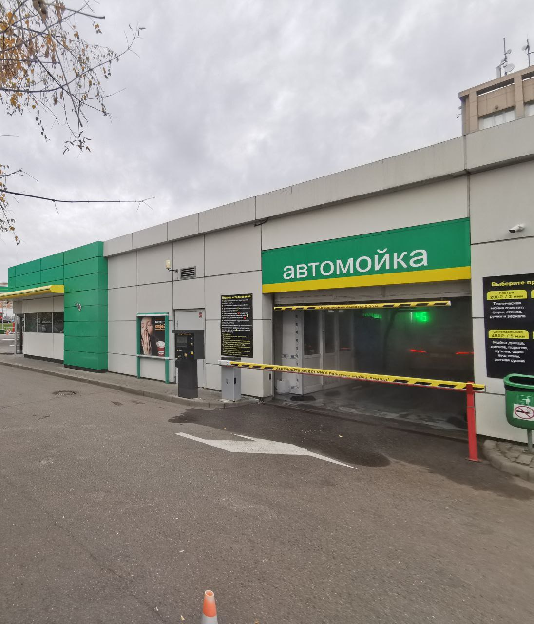 Автоматизированная мойка имеет выгодное месторасположение. Через дорогу находится «Эль кафе», в которое водитель может заехать после помывки машины и выпить кофе. Рядом с автомойкой установлен платежный терминал «Элекснет».