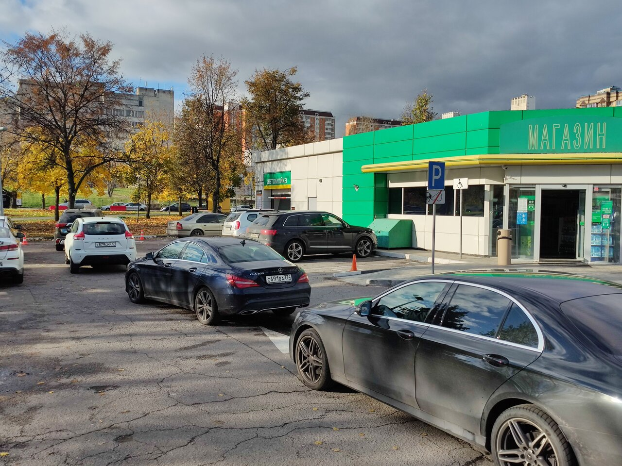 Располагается автомойка в светлом здании с яркой зеленой вывеской, поэтому водители сразу заметят ее. Рядом находится небольшая стоянка. Водителю необходимо съехать с крупной дороги на проспекте Вернадского и миновать станцию проката велосипедов «Велобайк». Чтобы оказаться возле автомойки, надо будет проехать еще около 100 м.